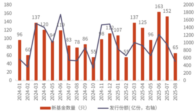 2012年以来基金数量与发行规模变化如图5所示,2025年发行量略见回落。2024年以来月度基金发行趋势(图6)显示波动,反映市场发行节奏调整。[page::3]