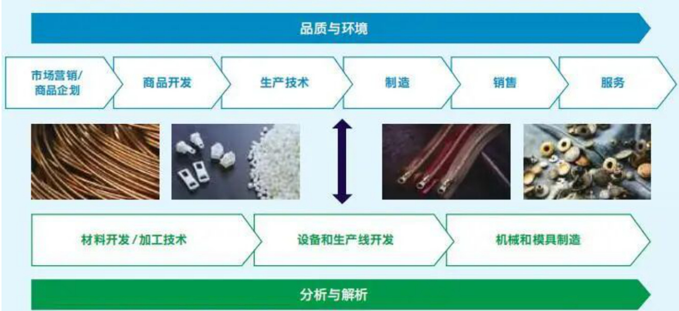 - YKK全产业链及产品创新示意,从人才到设备一体化,与伟星相比形成技术壁垒。