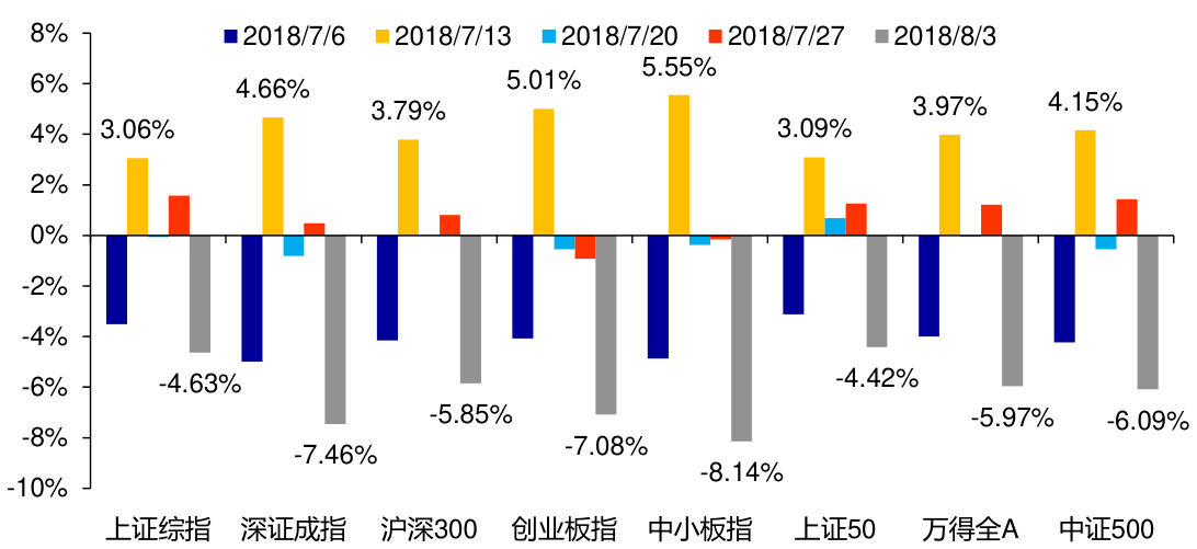 - 反映2018年7月底至8月初多指数大幅下跌,深证成指等跌幅达7%以上,市场整体承压。
