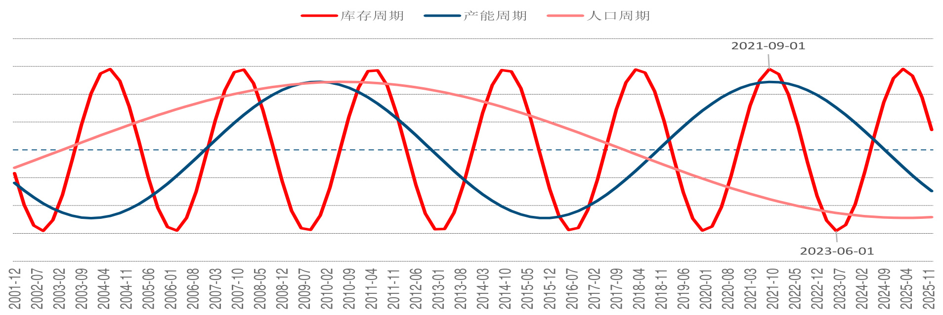 - 中国人口、产能、库存三周期叠加影响,人口与产能周期下行,库存周期回升,带动企业盈利反弹。