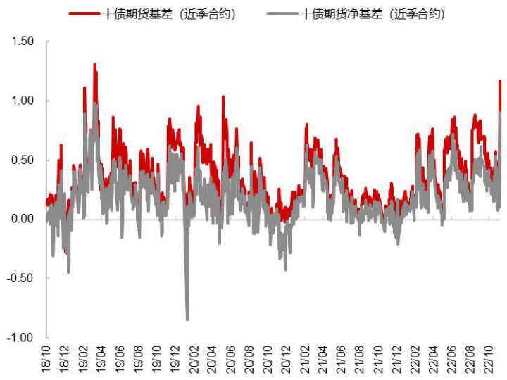 - 近季合约基差和净基差波动剧烈,多次突破历史高位,尤其是2022年末十债期货近月合约基差处于极端水平。