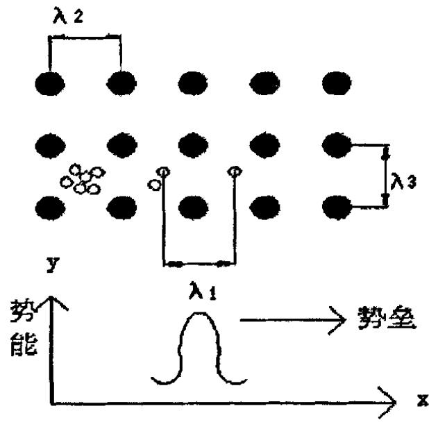 - 图4.1 液体“格子”模型示意,引入能垒和分子迁移过程的势场概念,为微观扩散机理提供直观基础。[page::44]