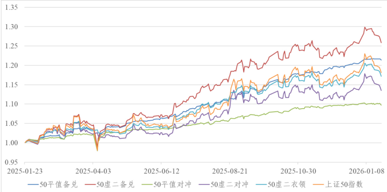 - 结论:备兑与对冲类组合在回撤控制和波动率方面通常优于直接持有指数(近一年:平值备兑与平值对冲波动显著低于上证50),但在标的回调时也会遭受溢价损失 [page::4]。